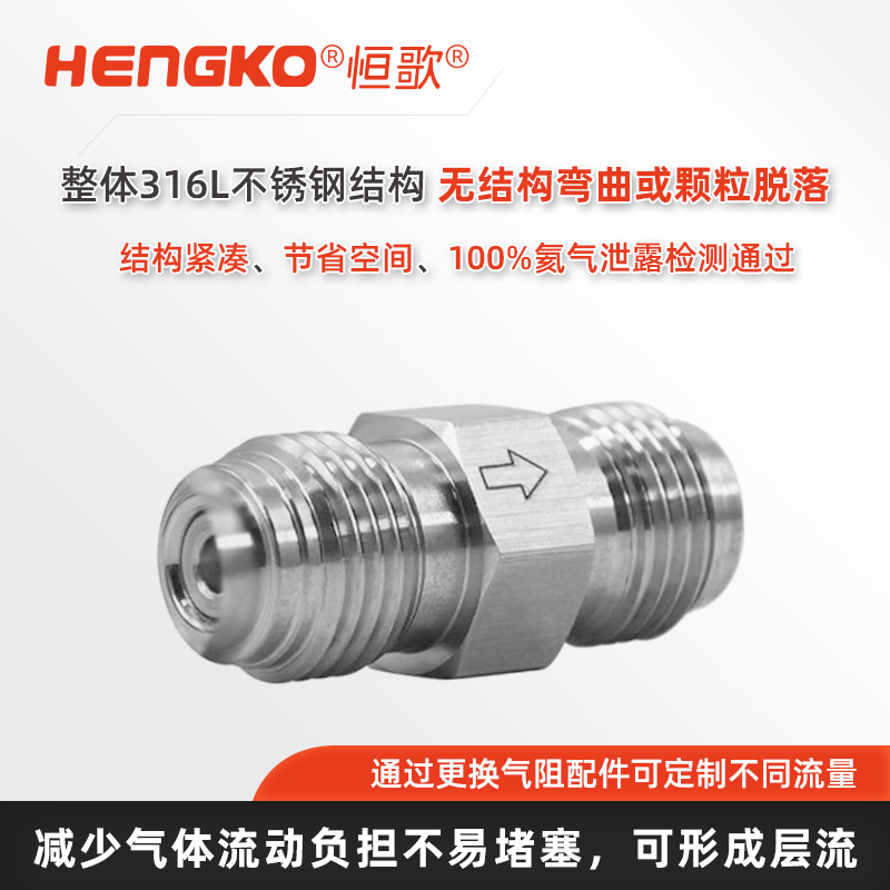 RF系列多孔金屬限流器采用高純316L不銹鋼燒結技術制造,適用于高壓、高流量、超高純氣體輸送系統。當氣體管線破裂、閥門異常或調壓器失效時,它能自動限制過量氣體瞬間噴出,有效保護氣路系統安全,避免工藝中斷或設備損壞。