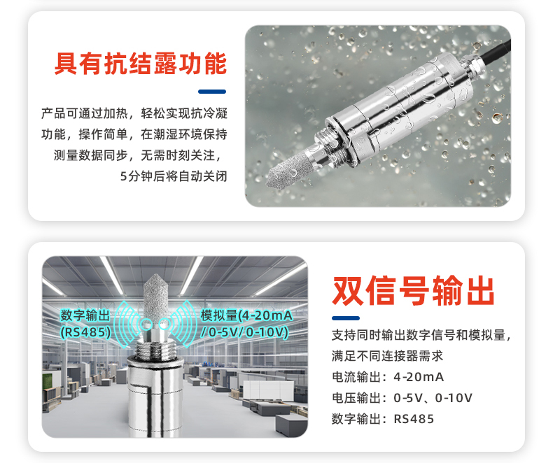 ●抗結(jié)露:?通過(guò)加熱,讓探頭在潮濕環(huán)境變得干燥,確保測(cè)量的準(zhǔn)確性