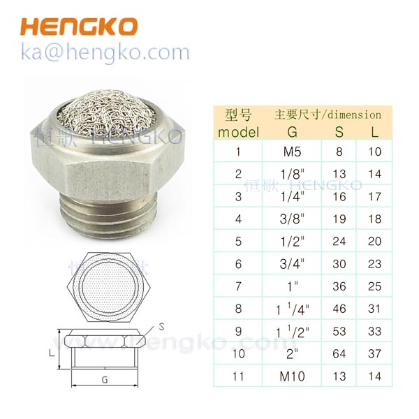 恒歌不銹鋼燒結降噪消音器是固定在標準管件上的多孔燒結濾芯,這些小巧且便宜的消聲器易于安裝和維護,特別適合空間有限的地方,它們用于將空氣和消聲器噪聲從氣閥、氣缸和空氣工具的排氣口擴散到OSHA噪聲要求范圍內(nèi)的可接受水平。不銹鋼燒結降噪消音器結構穩(wěn)定,具有較高的抗疲勞強度,抗沖擊應力和耐高壓的特點,過濾精度可選范圍在0.2-120微米之間,氣動消聲器易于安裝和維護,特別適用于空間有限的場合,它主要用于降低壓縮氣體時的輸出壓力,從而降低氣體排出時的噪音。